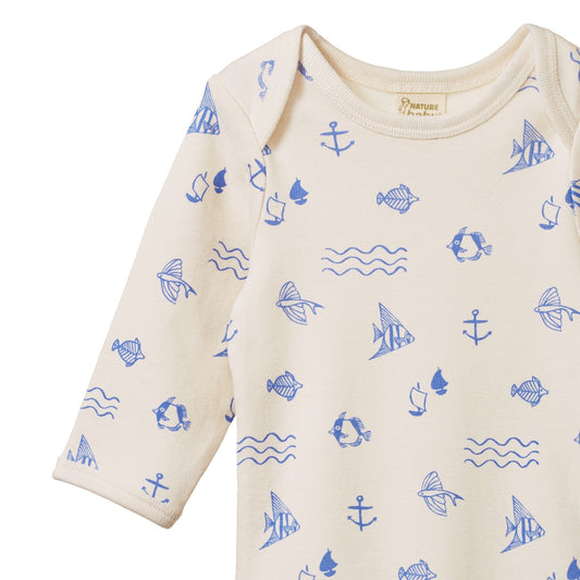 Cotton Long Sleeve Bodysuit / Atlantic Print