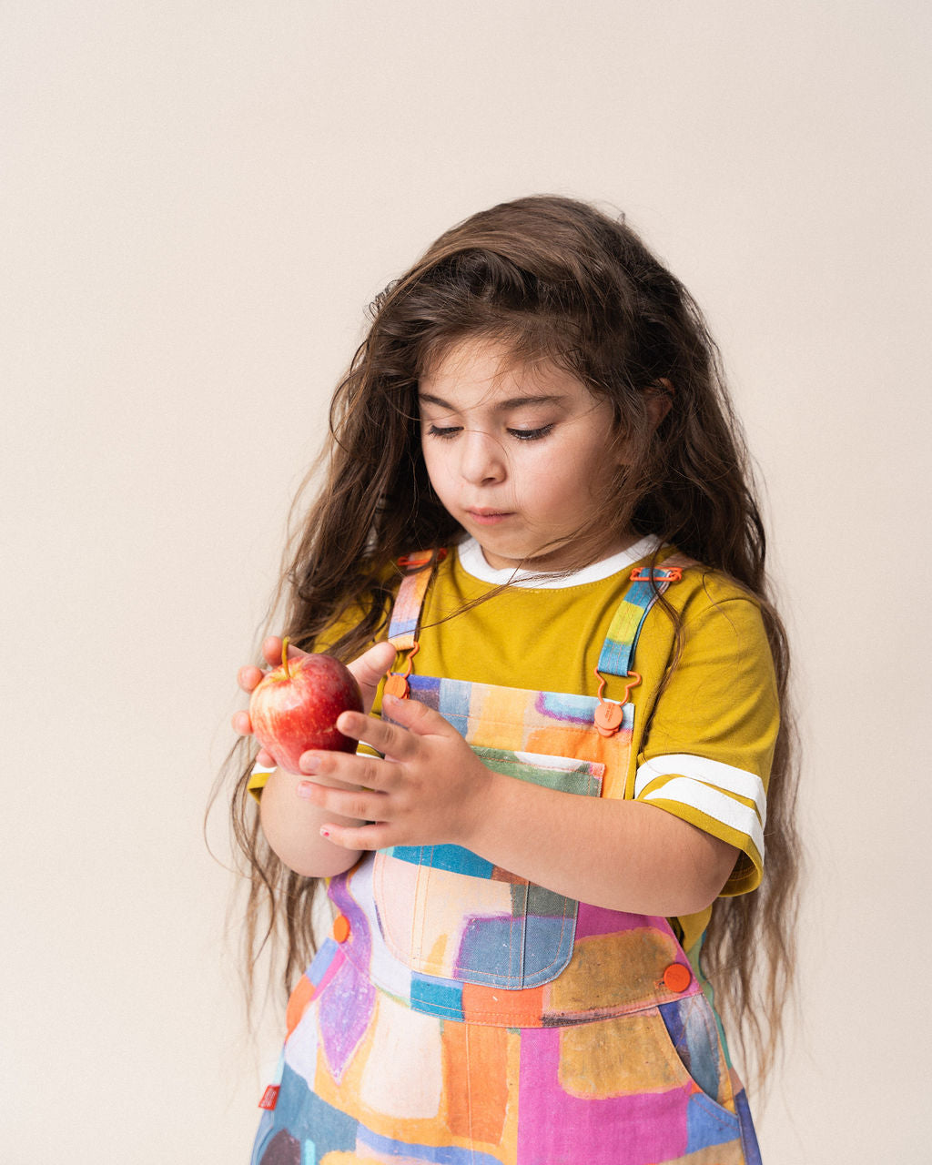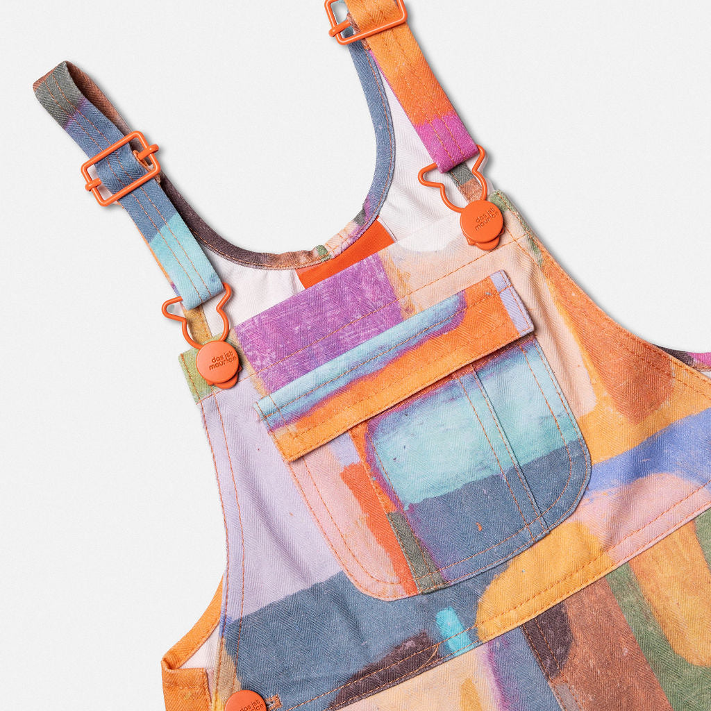 Let your little one shine in these playful, hand painted and drawn 'Brooklyn' print overalls! Featuring vibrant hues and a mix of soft, pastel tones, these overalls are the perfect combination of comfort and creativity. The adjustable straps ensure a great fit as they grow, while the roomy pockets provide plenty of space for their little treasures.