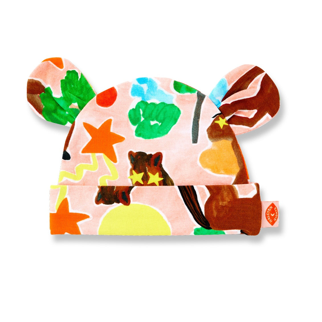 Cosy as a bear! Lock in body warmth from the top down with this super soft and snuggly cotton jersey baby hat.