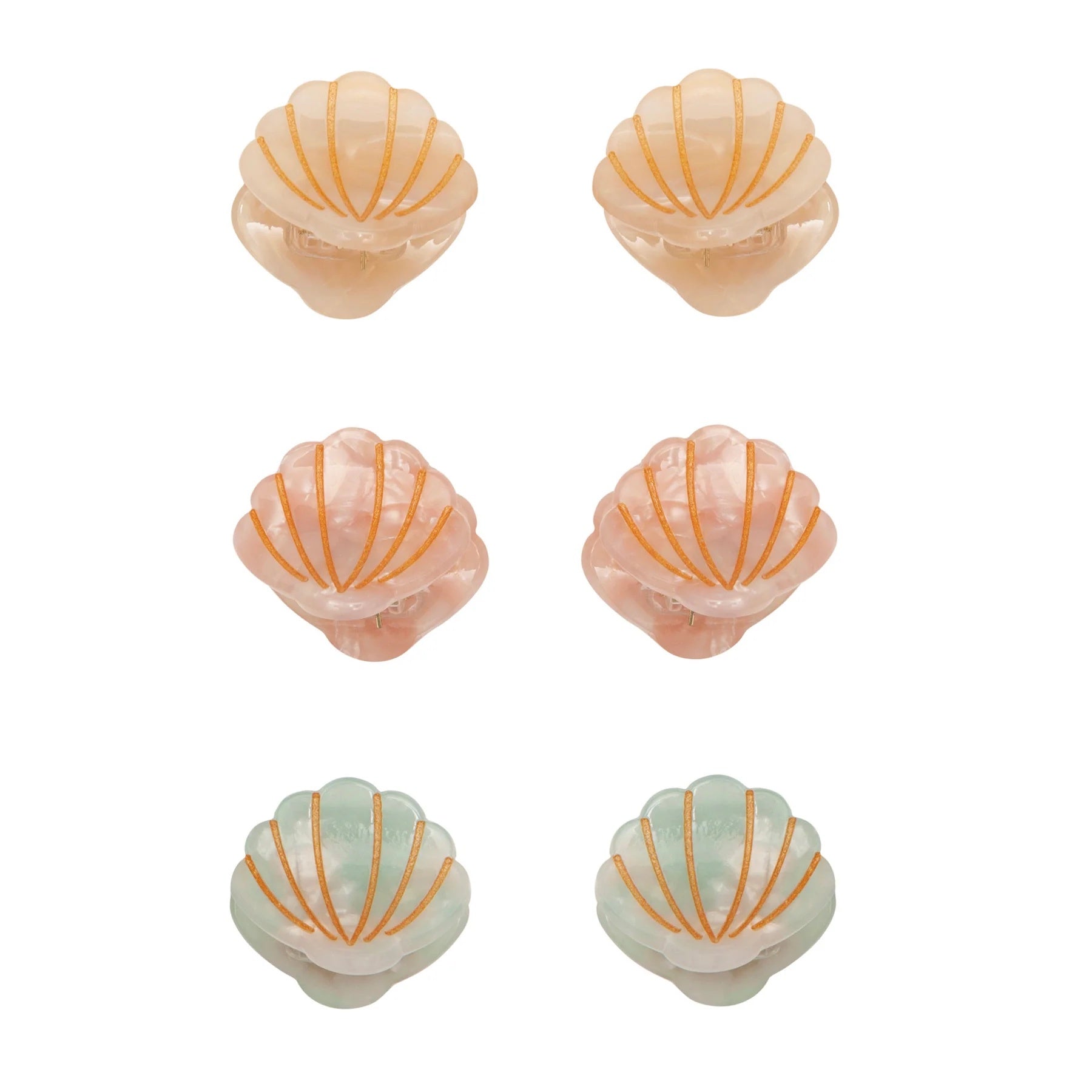 Sweep hair back on hot days this summer with these sweet mini shell claw clips. Perfect for little beach lovers!