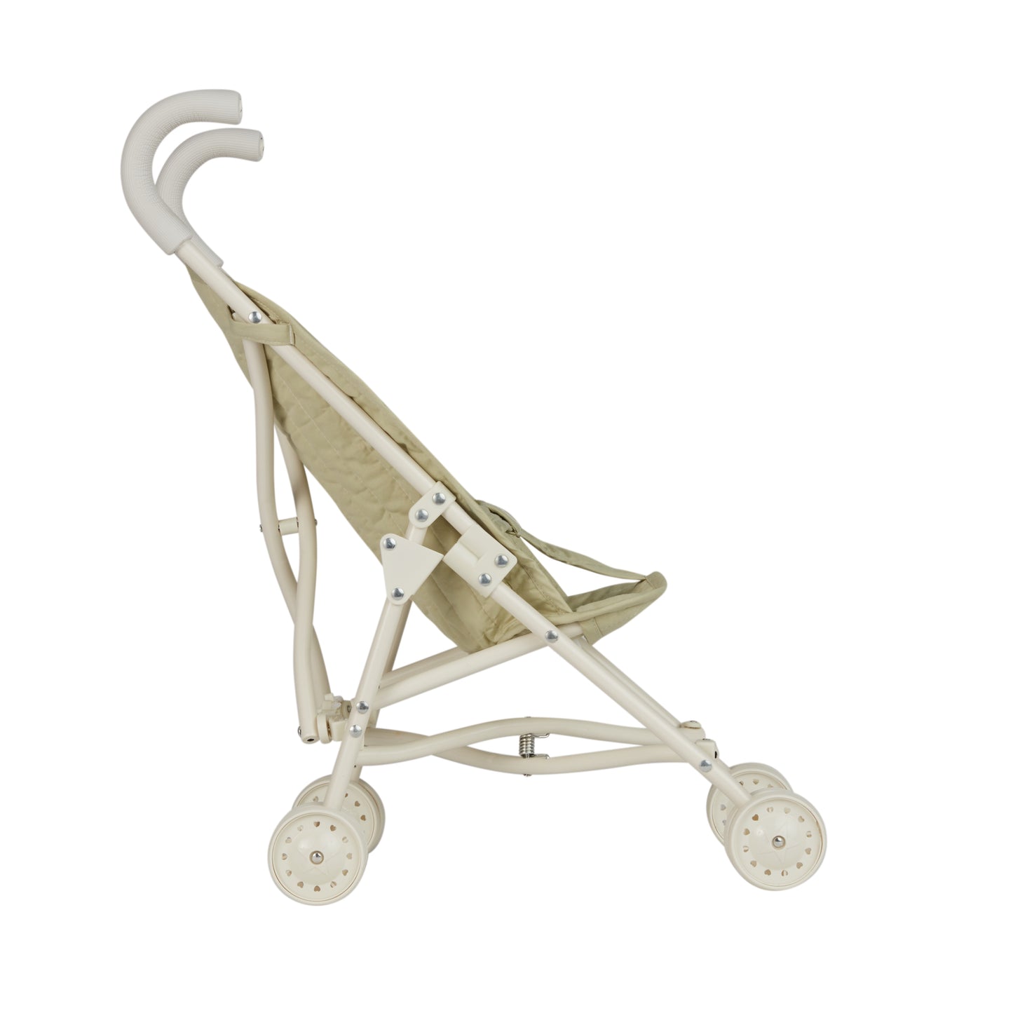 · The Sollie Stroller includes a quilted cotton seat attached to a metal foldable frame, all conveniently stored in a stylish cotton canvas drawstring bag for easy transportation.