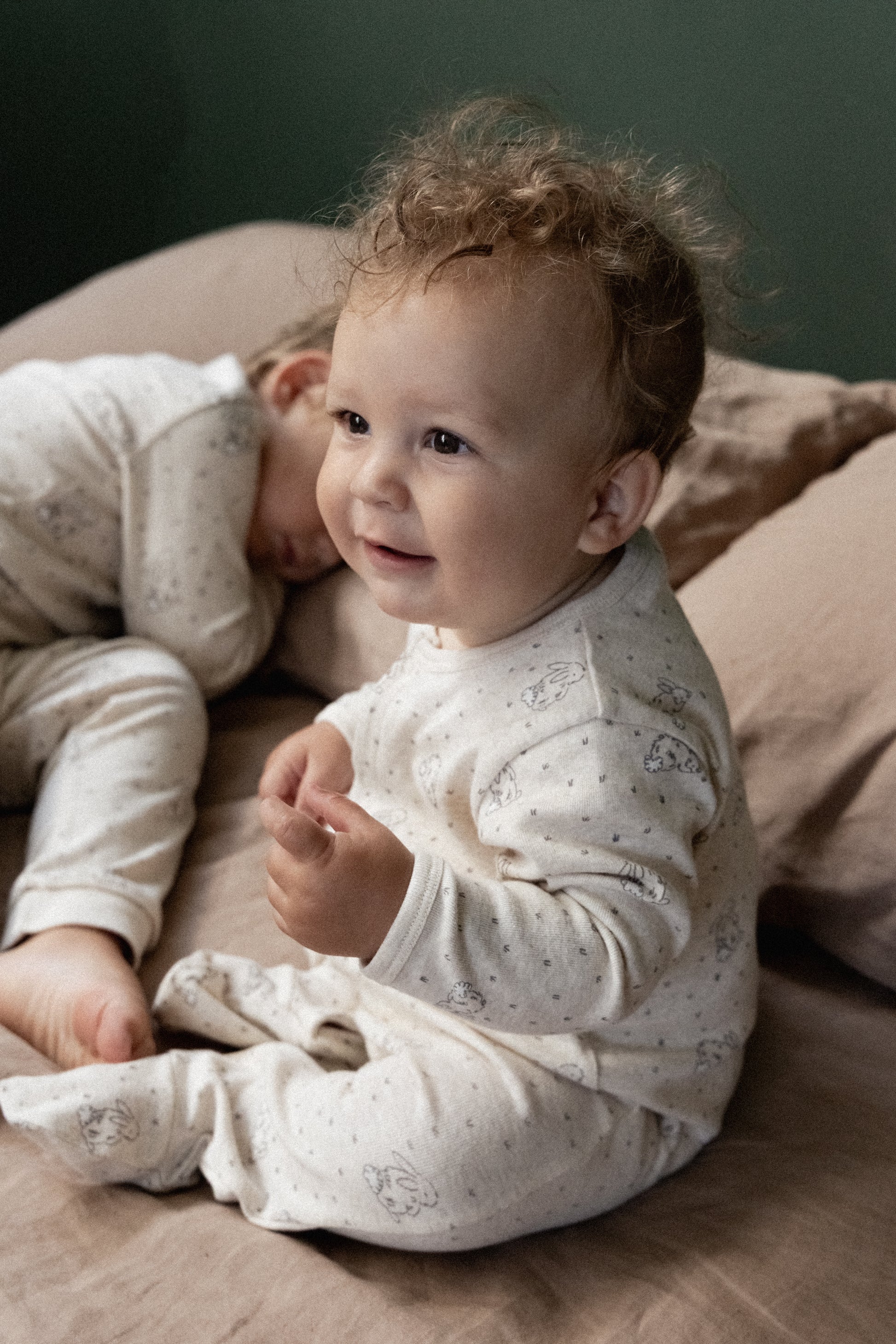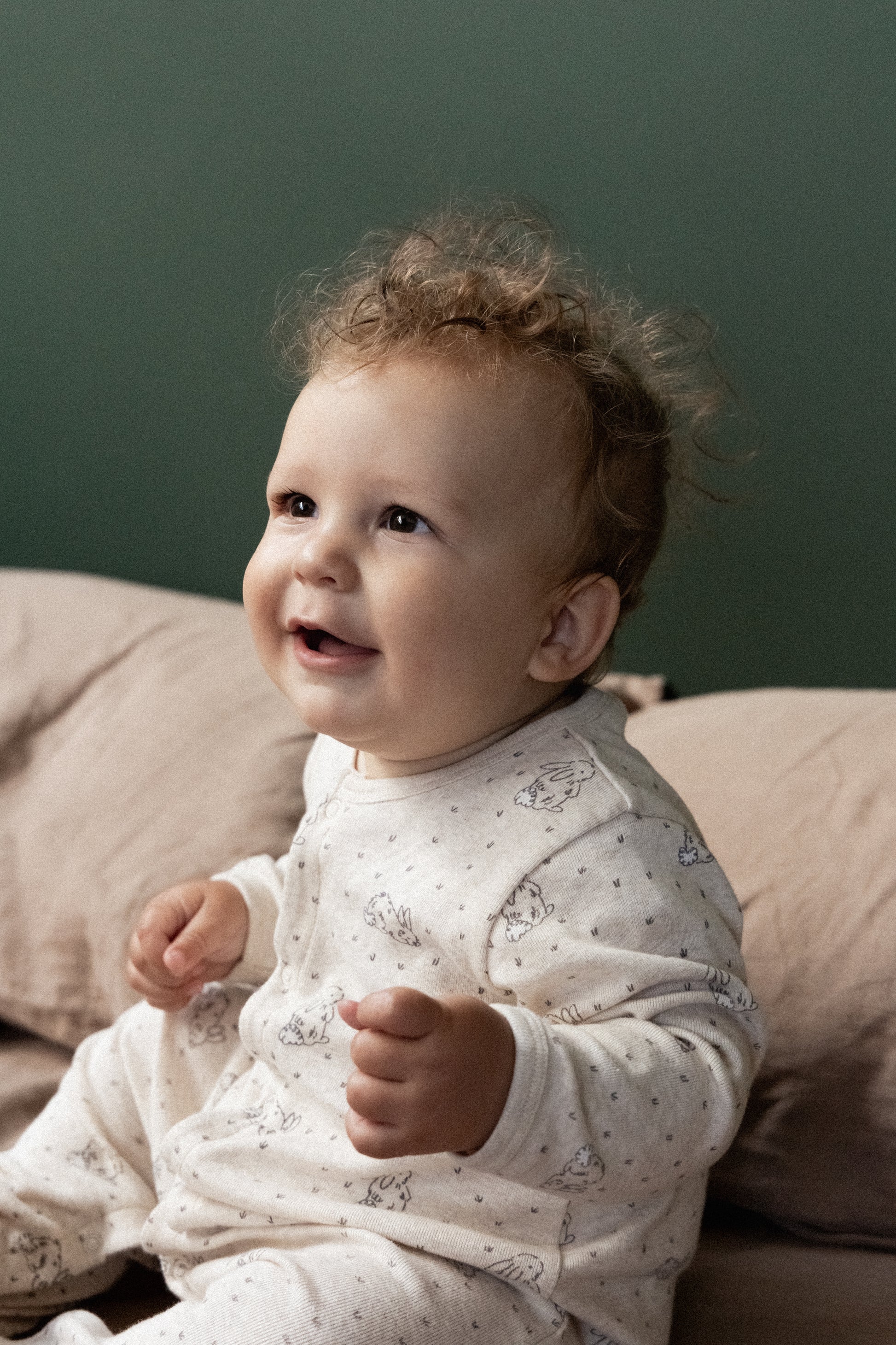 All in one suits are perfect in baby's first few months, for both day and nightwear. The stretch & grow keeps baby's feet covered and features convenient snap domes all the way down the front and around the legs to facilitate easy nappy changes.